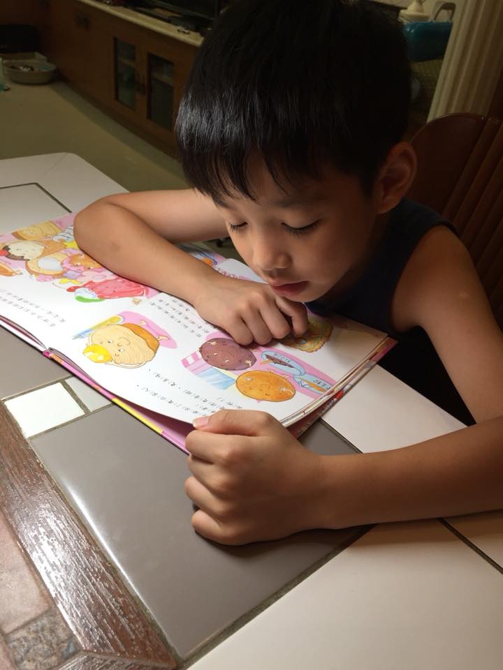 7歳的Allen靠著注音的輔助,讀得津津有味。